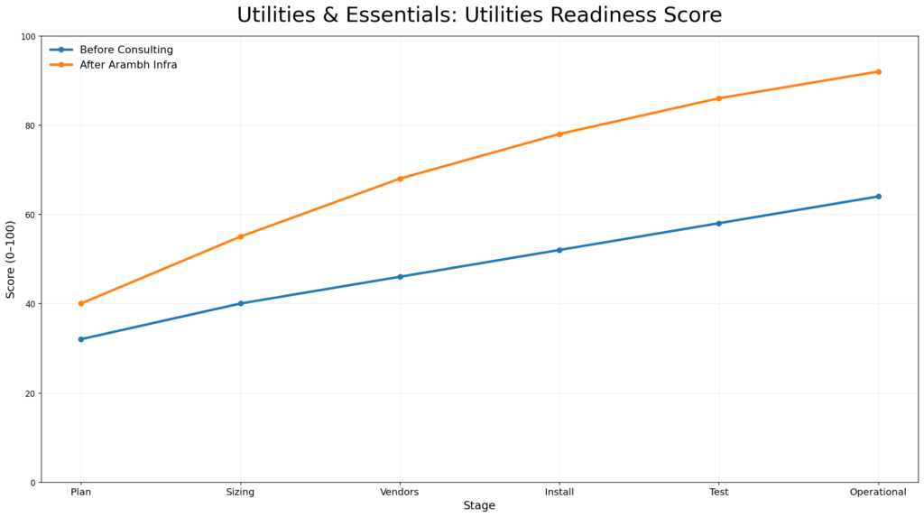 Utilities and essentials are often treated as “later” – and that’s where projects get stuck. We support planning and coordination for STP, rainwater harvesting, and amenity planning so these essentials fit the site plan and execution flow. Done correctly, utilities strengthen project readiness and improve buyer confidence without chaotic last-minute fixes.